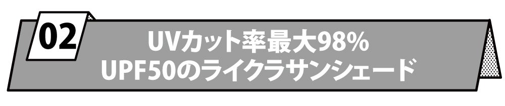 UPF50のサンシェードで日焼防止効果は抜群!サンシェードに使用されているライクラは各種競技ウェアや水着などにも使用される高機能素材です。肌触りがよく軽量で伸縮性に優れた素材です。速乾性がありシワになりにくい特徴があります。