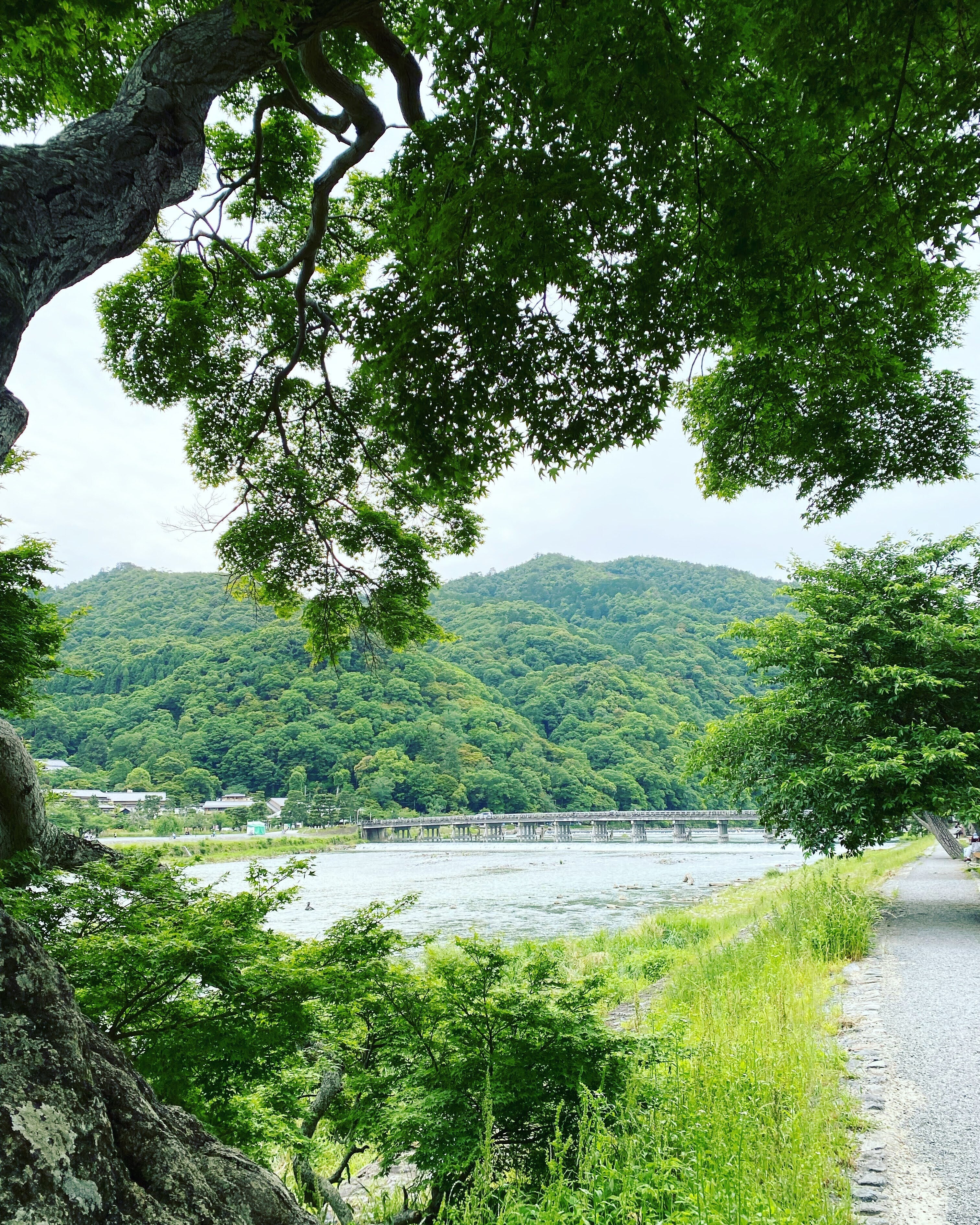 さて、今日の嵐山はどんよりとした曇り空。平日ということもあり、約8割ほどの店がシャッターを閉めていて、人通りはほとんどありません。