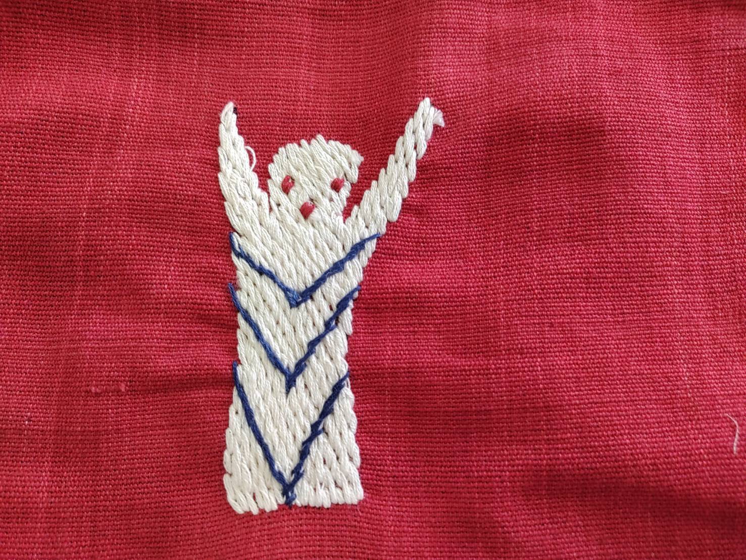 この顔をニヤニヤしながらチクチク刺繍していて、日本でもみんなをニヤニヤさせるこの子。素敵です。