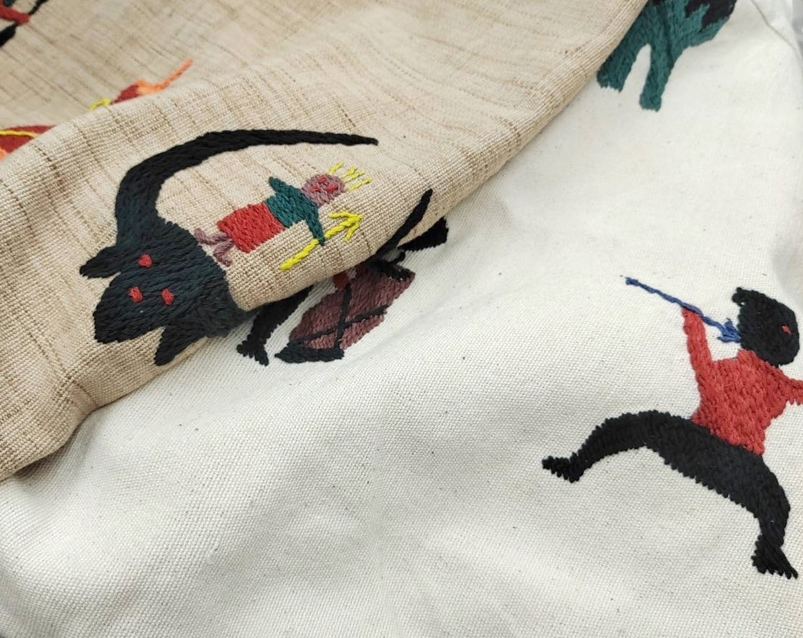 オフホワイトは糸の繊維感がすくなくすっきりとした印象です。生成りはしっかり手織り感が出ています。