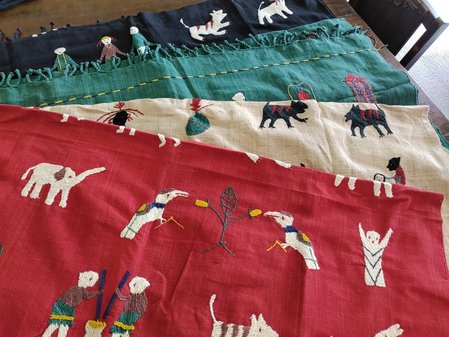 この度はご支援いただき誠にありがとうございます。縫製をしない生地そのままのリターン品が一部届きました。コロナ禍で混乱していた輸送状況も少しずつ改善しており、チェンマイから約1週間で弊社京都に到着します。商品が届き、開ける瞬間は何回経験してもワクワクドキドキします。今回もあまり見かけないレア柄がありました。いやいや、なに万歳してるんや!って突っ込みたくなるような「ワーイ」感です。この顔をニヤニヤしながらチクチク刺繍していて、日本でもみんなをニヤニヤさせるこの子。素敵です。