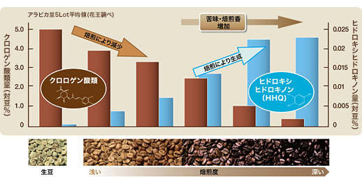 ザックリ言いますと旨み成分と雑味成分が混同し焙煎深度によって増減が反比例するというものです。
