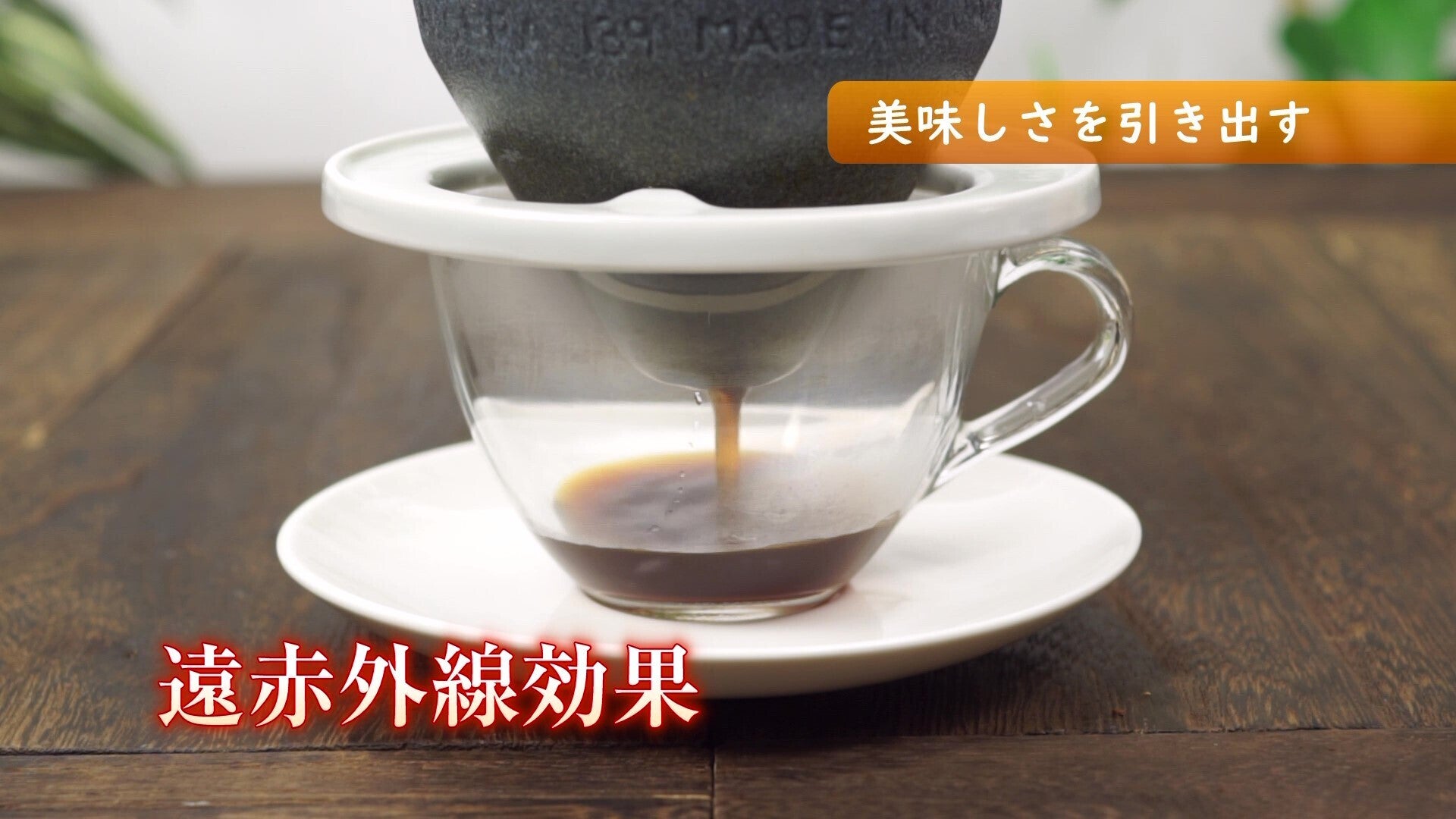 旨み成分はサイズ的に大きく、雑味成分はサイズが小さい。各成分の"分子サイズ"に着目し小さな成分のみを吸着させて取り除けば雑味の少ない美味しいコーヒーになる。つまり、陶器表面の目に見えない凹凸が雑味を吸着し旨みだけを50ミクロンの孔から抽出しているのです。