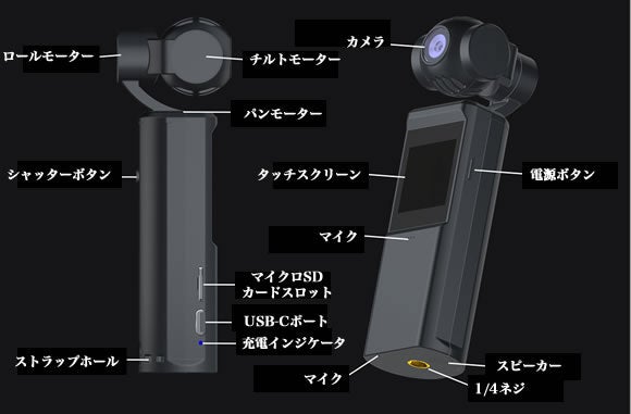 小型ながら、ジンバルのスクリーンはタッチ対応。