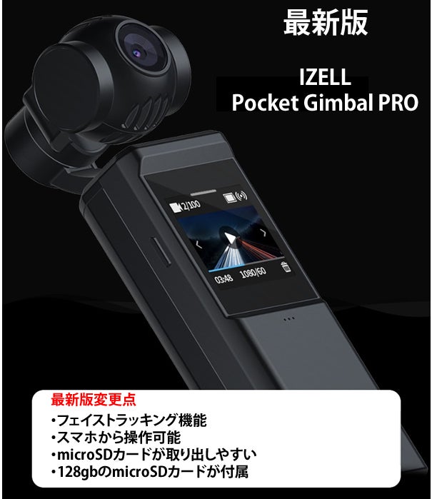 昨年大好評だった「IZELL Pocket Gimbal 」がアップグレードし更に128gbのmicroSDカードが付属!
