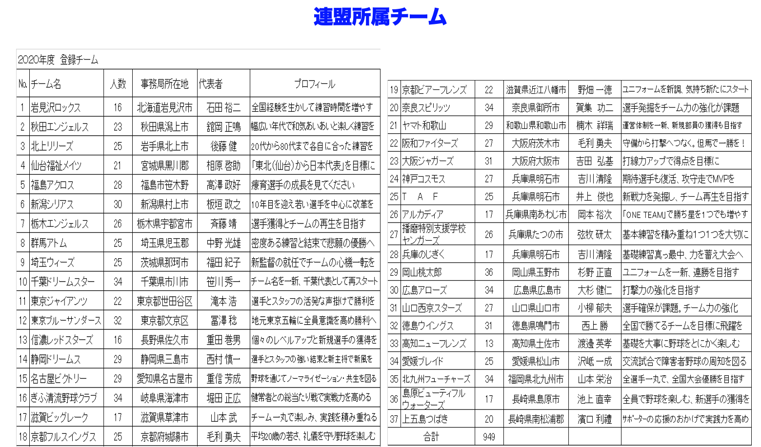 (2020年現在、1都1道2府25県にて全37チーム