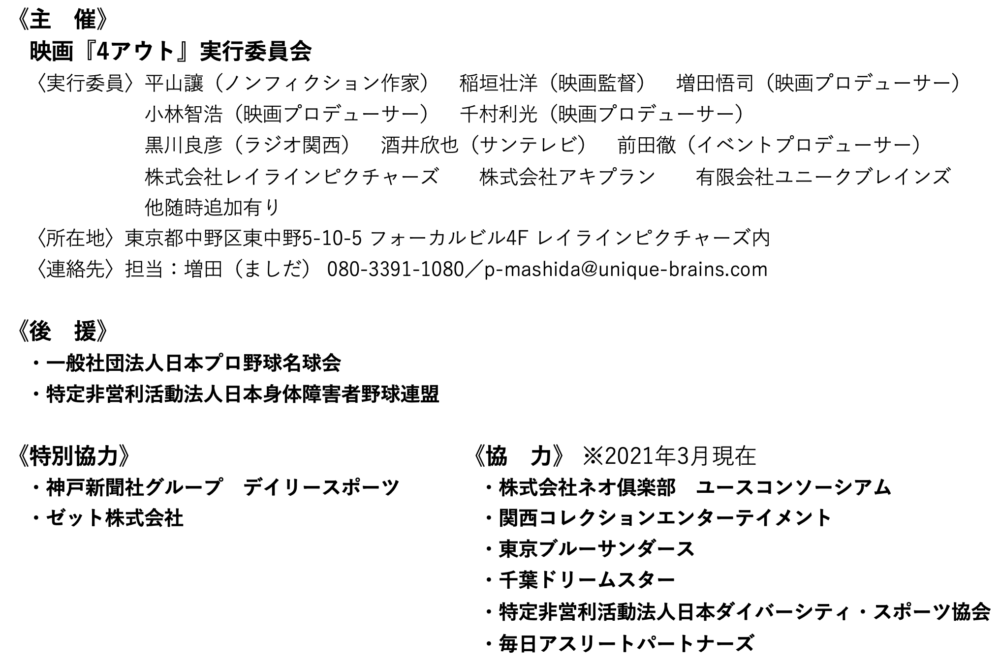 そこで、なんとかその遺志を受け継ぐべく、映画「4アウト」実行委員会を設立致しました。