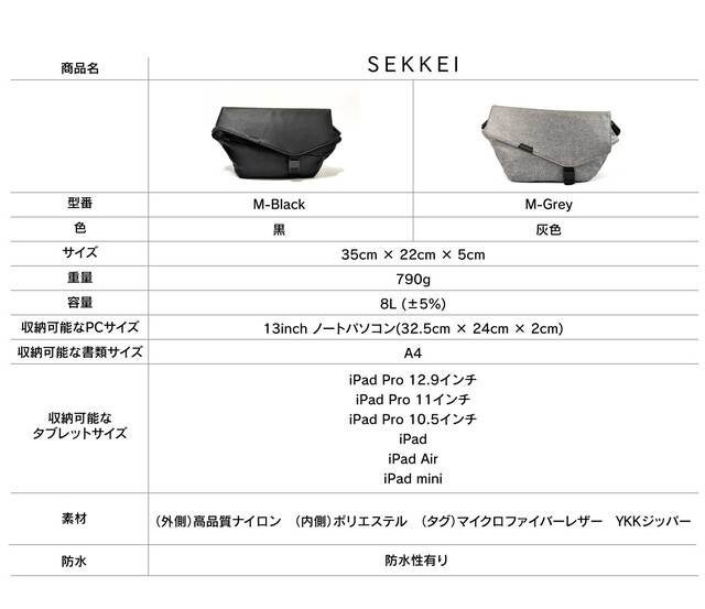 プロダクト名はカッコよくないかも知れませんが、このバッグを創るために集まった多国籍のメンバーの我々が、このアイテムを製作するうえで共通のキーワードとした日本語の「設計」と言う言葉をそのままこのスリングバッグの名前「SEKKEI」にしました。