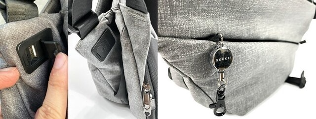 USBポートを搭載しており、バッグの内側にはUSBケーブルも付属しています。