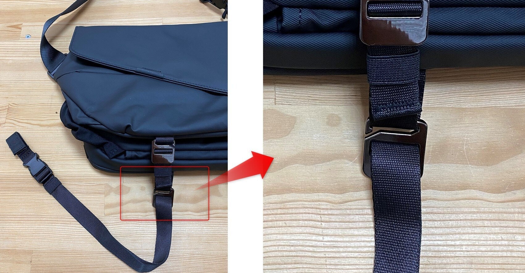 マグネットでカチッと止まって外れないバックル。スタイリッシュ且つ機能的。