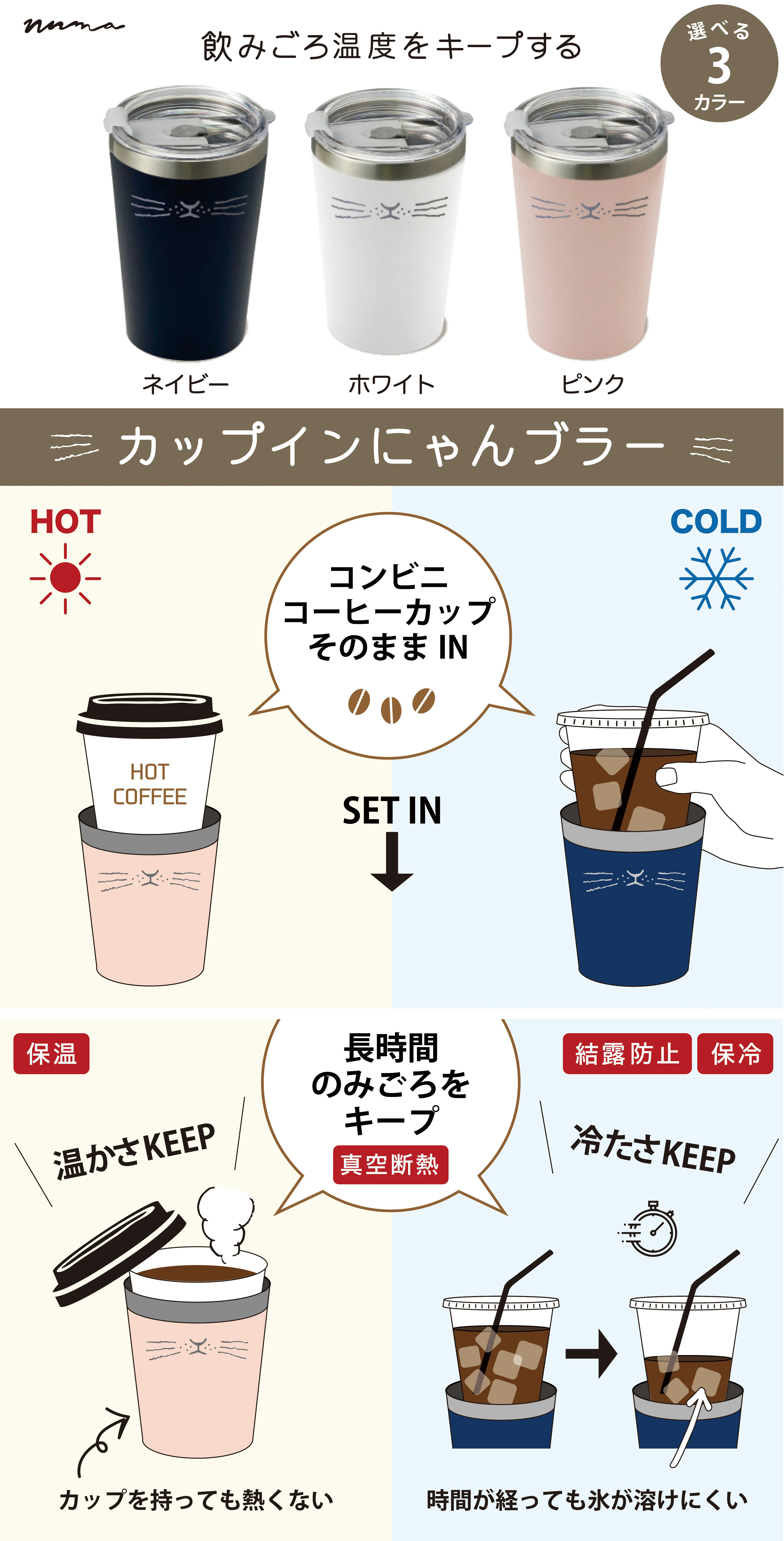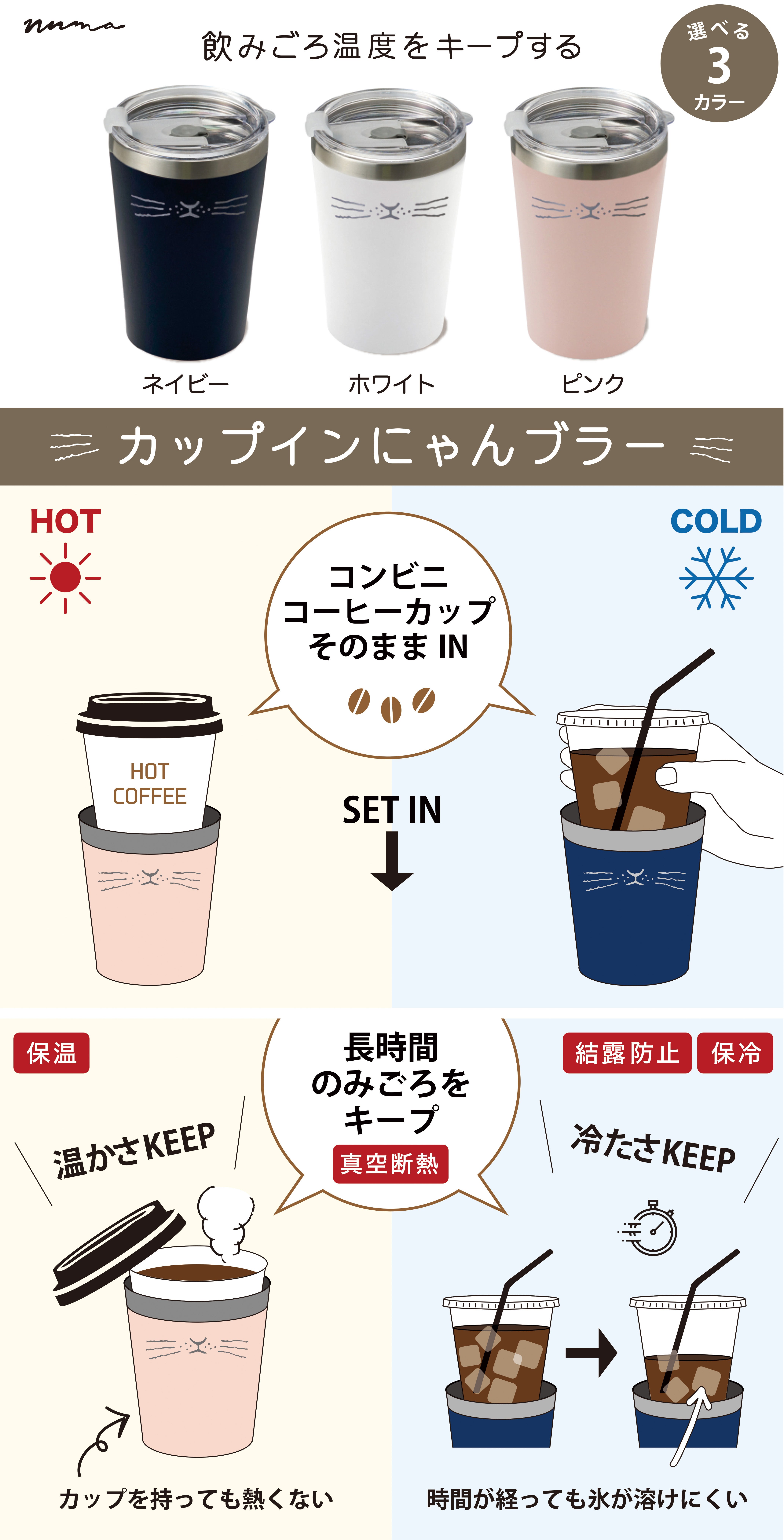 カップインにゃんブラーは、日本でデザイン・企画され、弊社提携工場にて厳しい管理体制の中、海外で生産されたものです。厚生労働省が定める食品衛生法の検査に適合した商品ですので安心してお使い下さい。