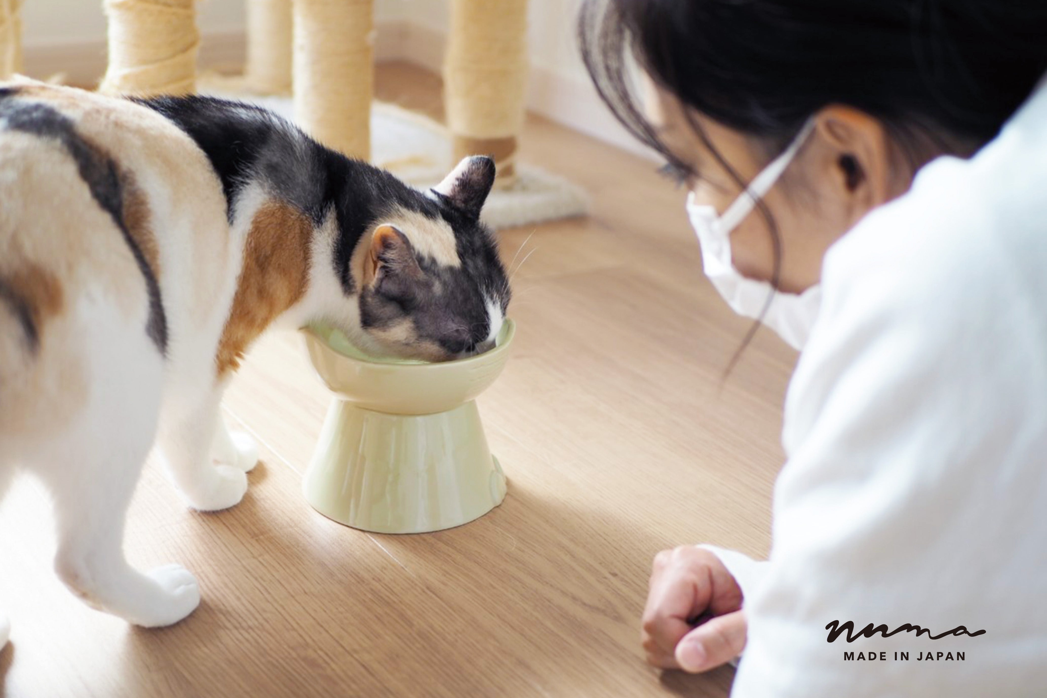 フードボウル「nnma(んーま)」の名前の由来は、子ネコがごはんを食べている時「んまぁ、んま」言いながら食べている姿が可愛かった思い出から名付けました。