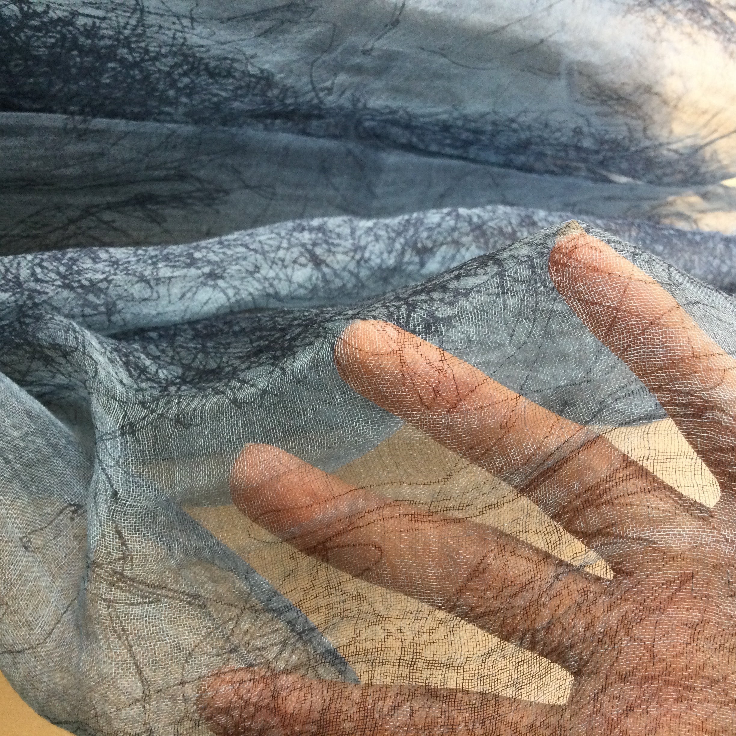 新規「木立」プリントショール麻100%110cmx200cm