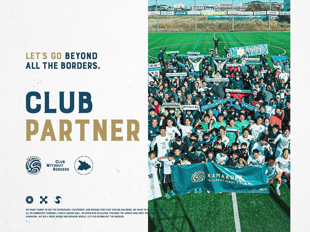 鎌倉インターナショナルFCでは、「CLUB WITHOUT BORDERS」というクラブビジョンを共に実現し、「共に創り、共に越えていく。」パートナー企業を募集しております。