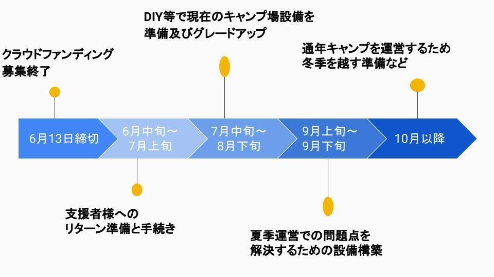 今回ご支援いただいた金額はすべてキャンプ場の設備資金と運営資金へとさせていただきます。