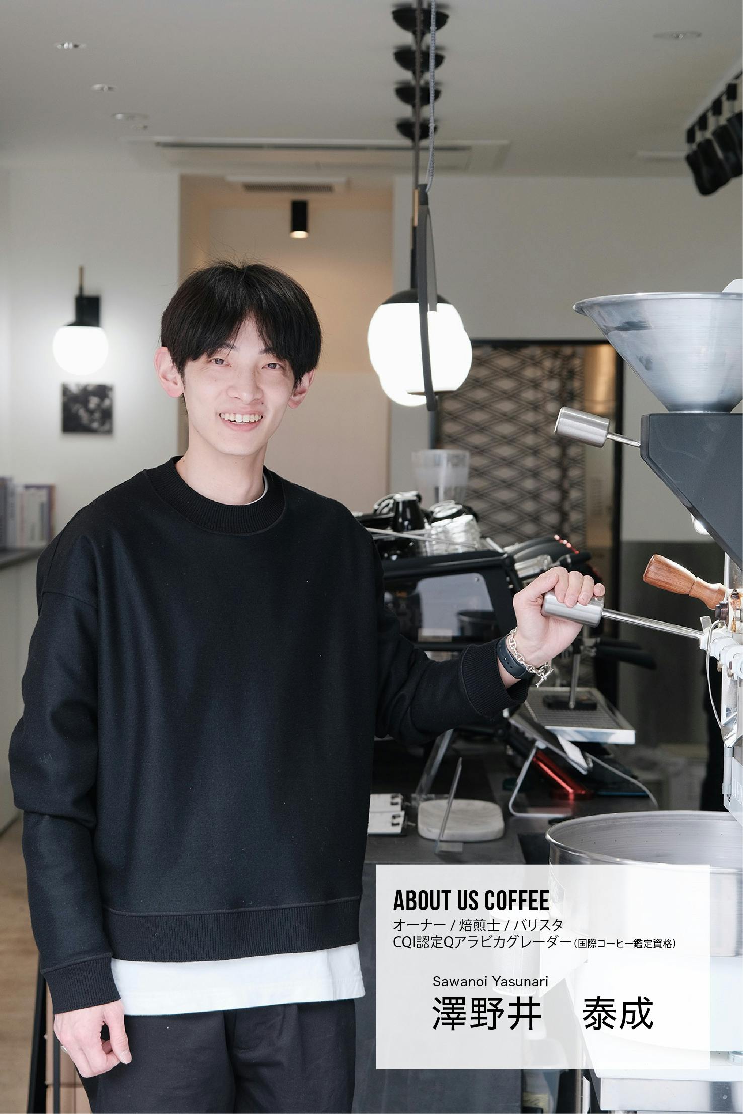 ABOUT US COFFEEは代表である私、澤野井がコーヒー業界歴0年で2019年、京都・伏見稲荷で開業をした、カフェ兼自家焙煎コーヒーショップです。