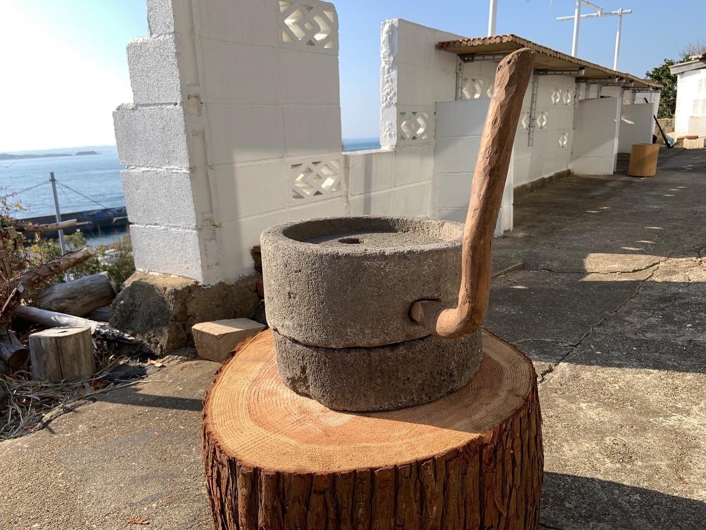 加唐島の空間でコーヒー豆を「石臼」で挽くイベントを開催していきます。