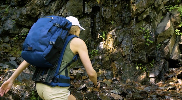 背中、首、膝、足首等、身体への負担が少ない状態でハイキングすることで、過度の負担とケガの危険性を減らします。