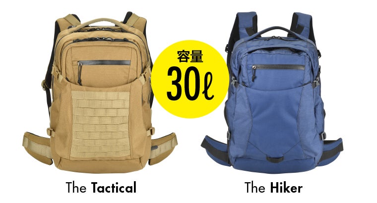 今回紹介するHoverGlideの“TACTICAL(タクティカル)” と“HIKER(ハイカー)”は、容量30ℓとハイキング、トレッキングだけでなく、街にもフィットするサイズなので、通勤や街歩きにもオススメです。