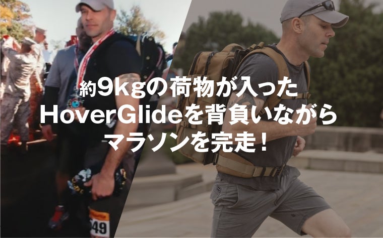 ただ、HoverGlideは十分マラソンに対応し、ショーン氏はHoverGlideの荷物が浮く力によって約9kgの荷物を背負いながらのマラソンを力を余して完走することができました。