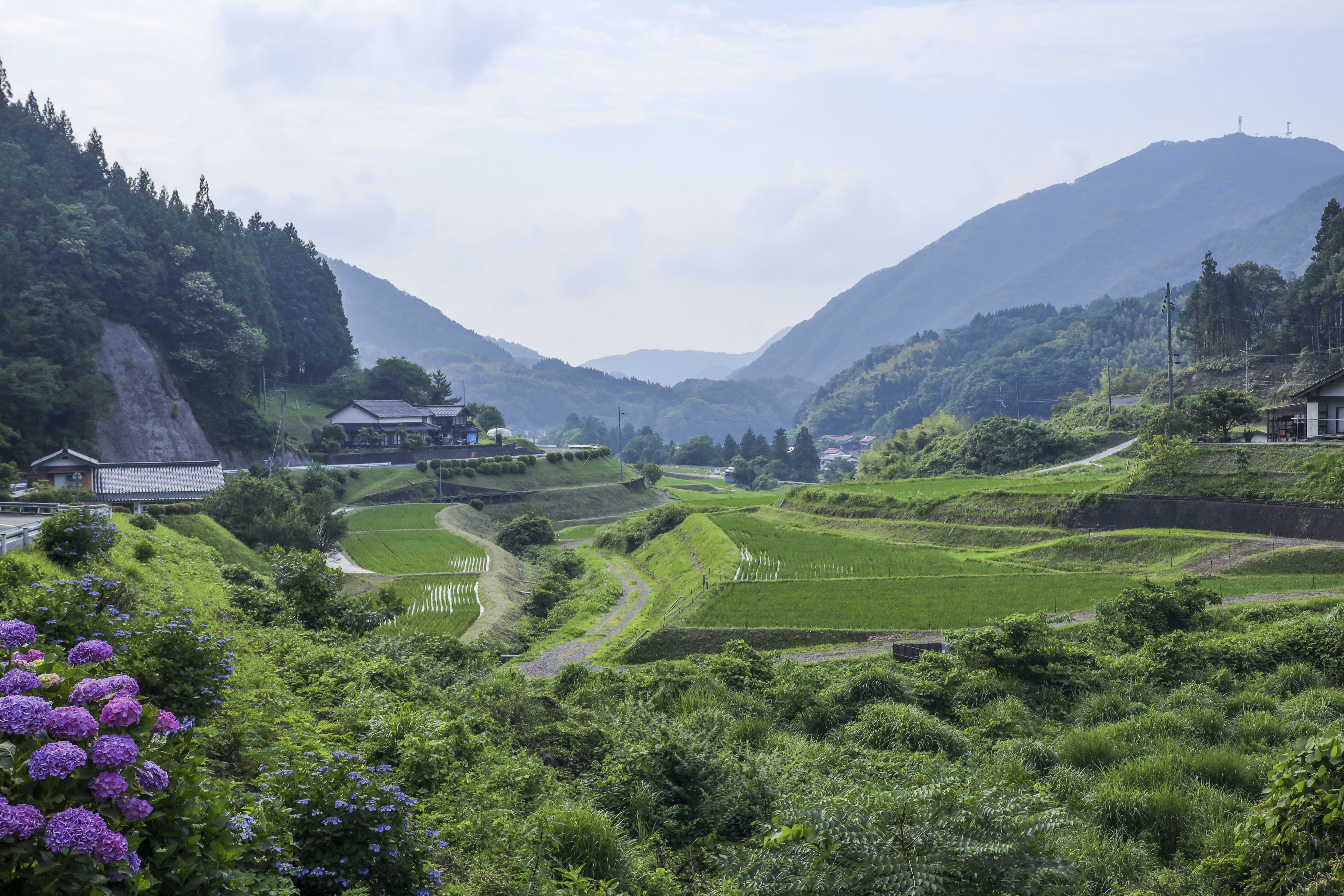 佐田町は 85 パーセント以上が森林で、山に囲まれた地域です。