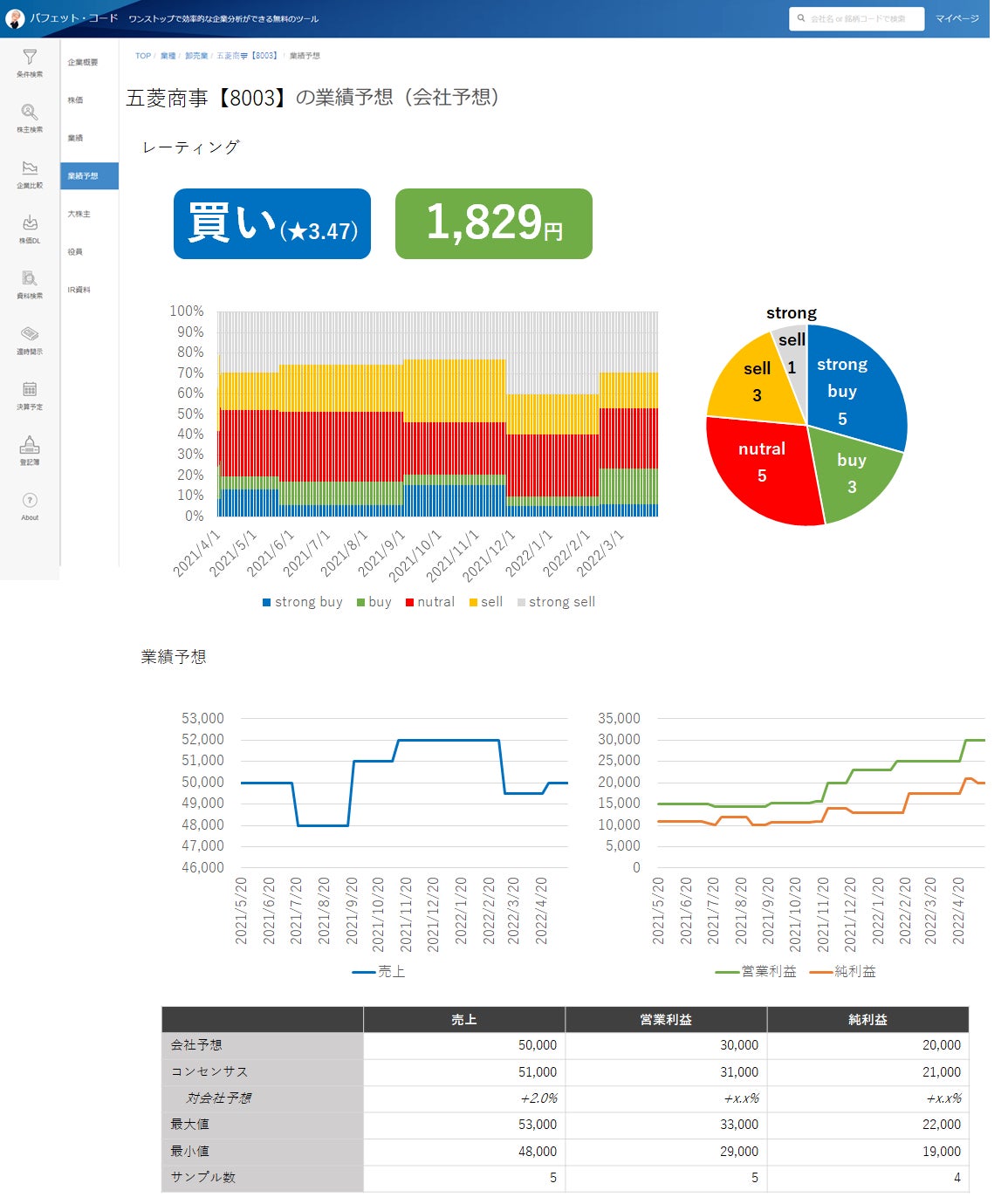 基本的なコンセンサスデータは無料で公開されます。