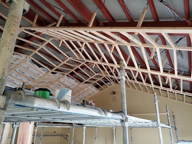 中に足場を組んで、天井を作っています。
