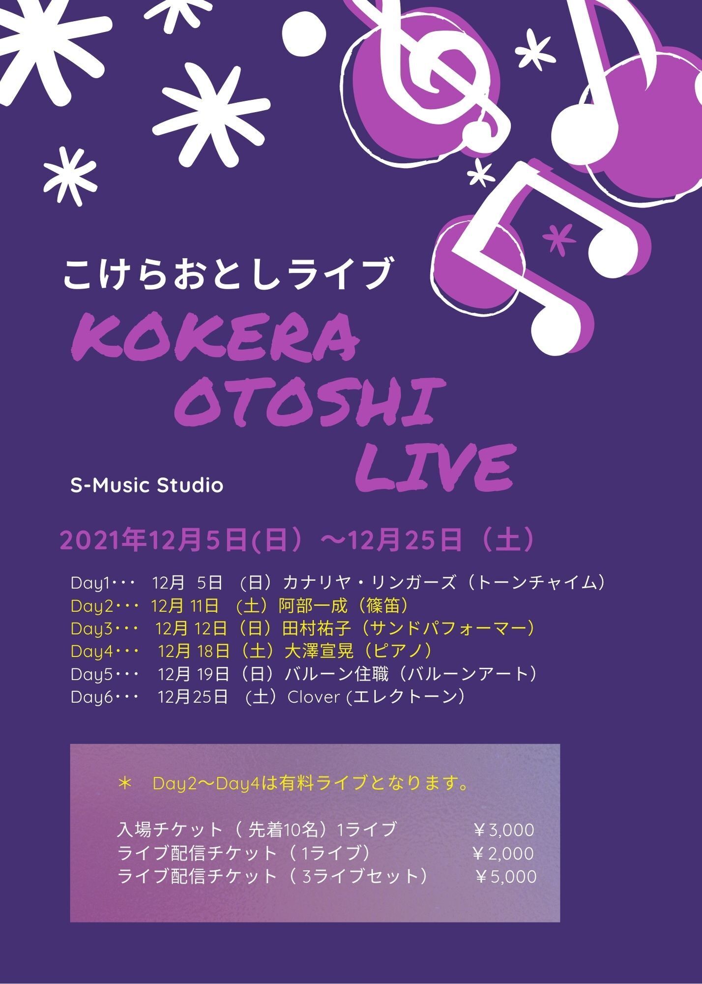 リターンに「こけらおとしライブ」の入場チケットと、ライブ配信チケットを追加しました。