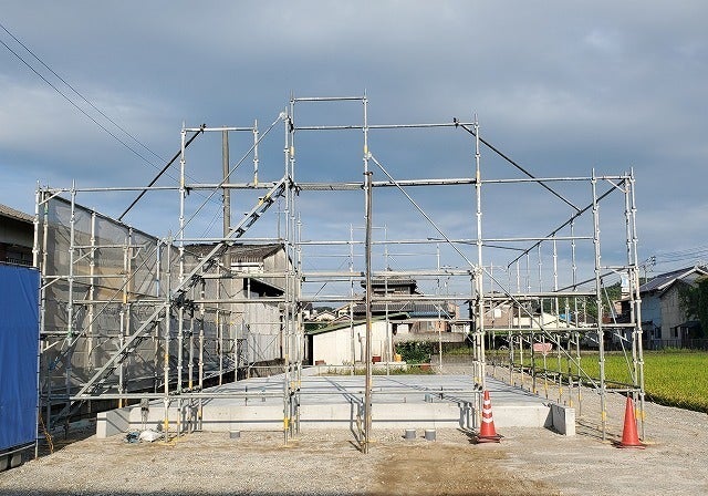 足場が組まれました!9月10日の棟上げに向けて進行中です。