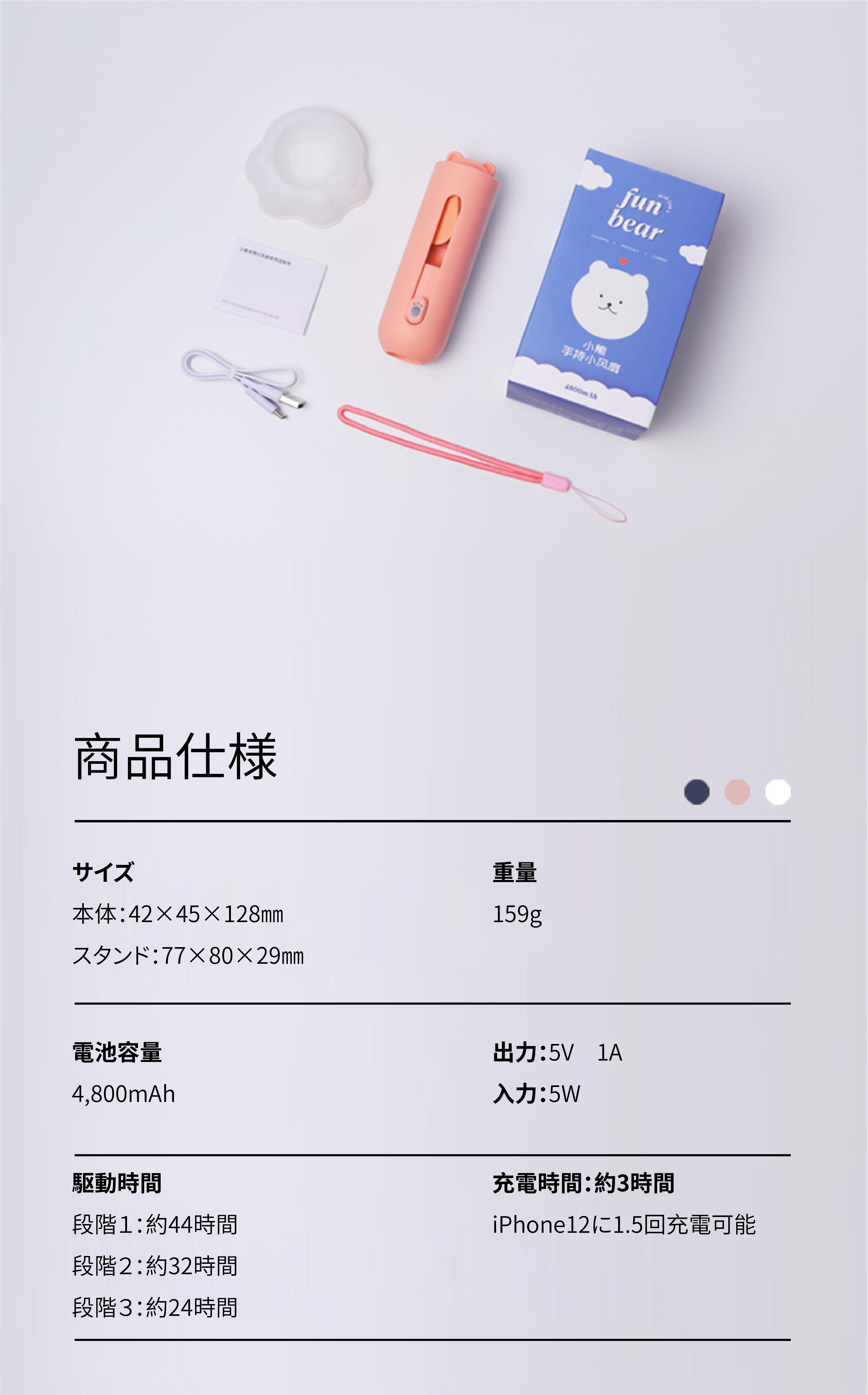 高速充電対応で、わずか30分の充電一日中使えます!(段階1の風力で7時間稼働)