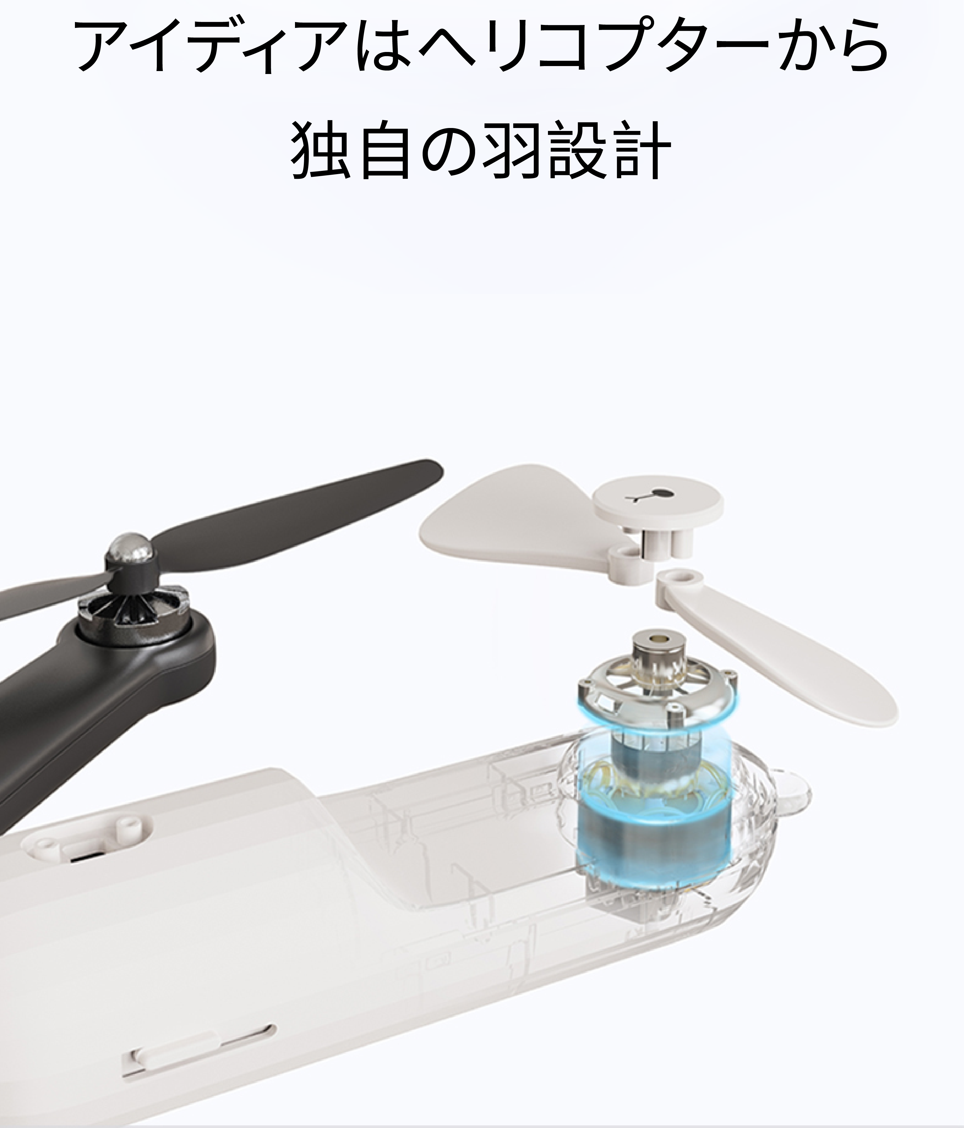 むき出しの羽を心配する必要はありません!羽に触れると自動で停止します。滑らかなに処理された樹脂製の羽でケガの心配いらず!