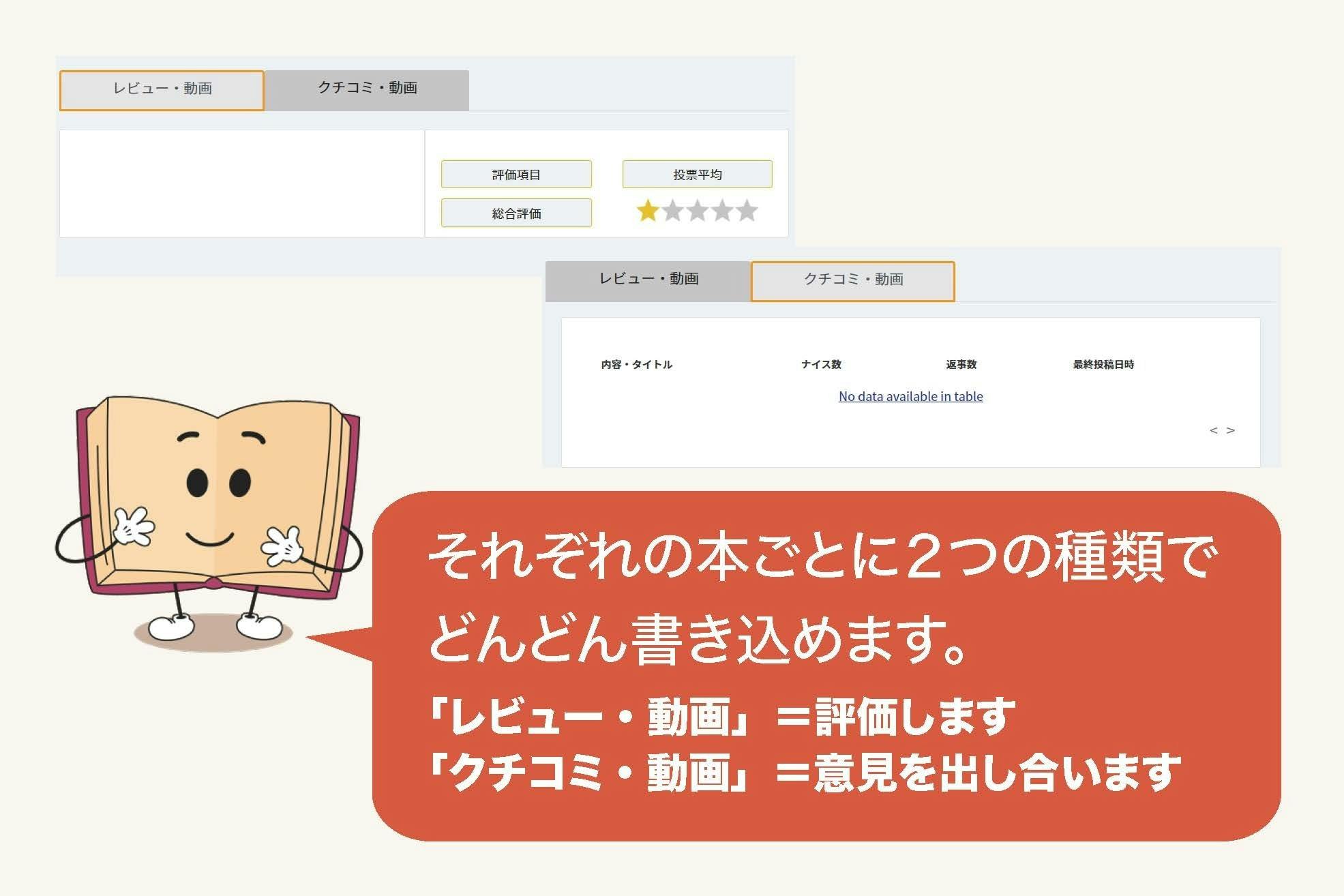 Amazonなどの本の販売サイトを見ていて、「レビュー」しかないのがもどかしく感じました。また、大手以外の出版社の本で「すばらしい!」というものがあっても、消えていく悲しさを見てきました。そこで、「レビュー」はもちろん「クチコミ」が書ける機能、さらに動画もYoutubeにあるものならば、投稿できる、そういう機能をつけました。どんどん本に関する動画も上げてください。