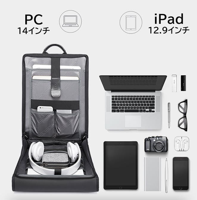 対応可能:A4サイズの書類、最大14インチのパソコン