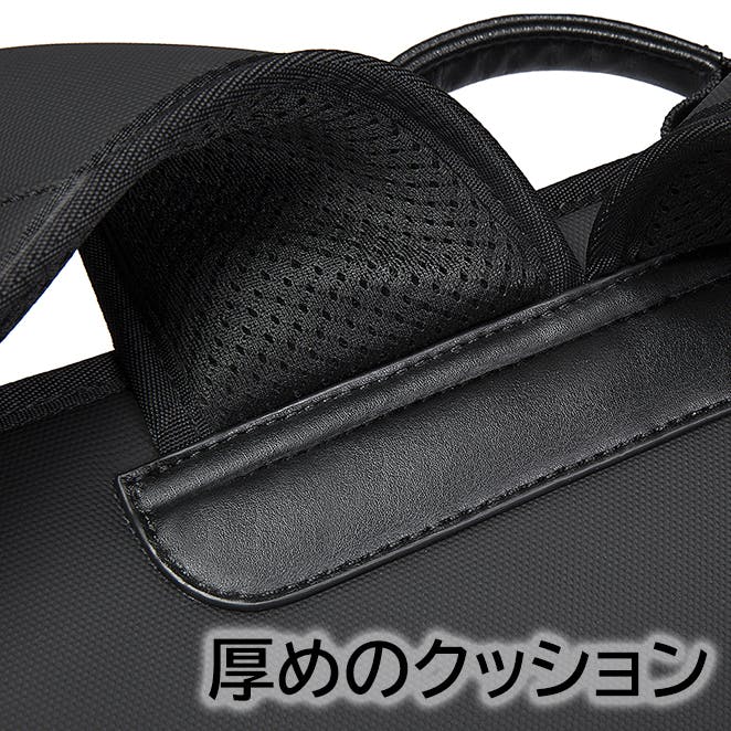 通常のリュックより大きい幅と厚めのクッション素材を合わせて肩にかける圧力がより小さくなります。