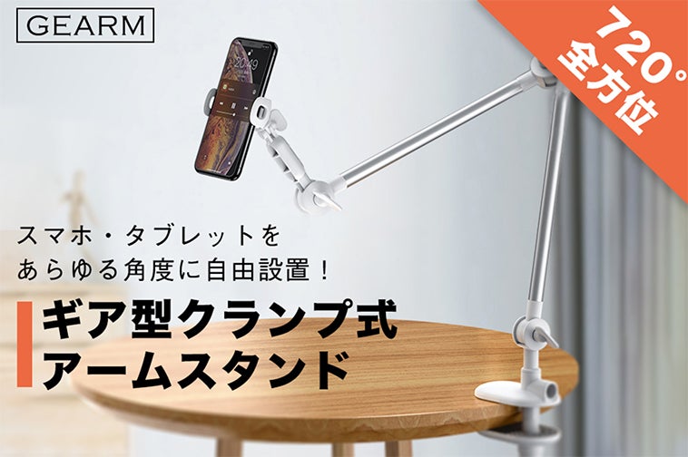 仕事中や寝ながらスマホをあらゆる角度に自由設置!アームスタンド「GEARM」
