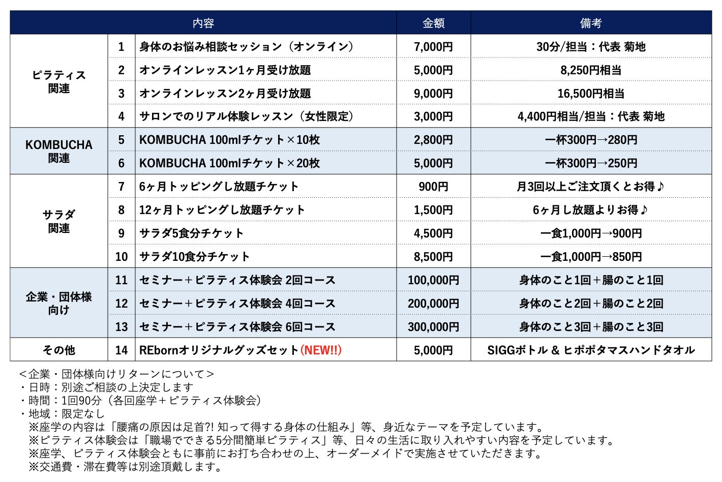 これまで解剖学やピラティスの知識をベースにお客様の身体と向き合ってきたREbornですが、これからは身体の中、特に「腸」を整える「KOMBUCHA」「サラダ」を提供することで、より多くの方の『心身の健康』、そして『変化』の後押しをしていきたいと考えています。