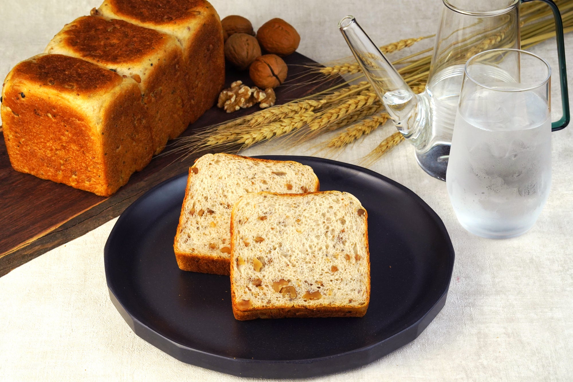 黒米・はと麦・玄米・ライ麦・大麦をブレンドした個性豊かな5種の雑穀の美味しさと、くるみの芳ばしい食感が楽しい、ブラックチアシードをたっぷり混ぜ込んだ食パン。ザクザクとした食感をお楽しみください。