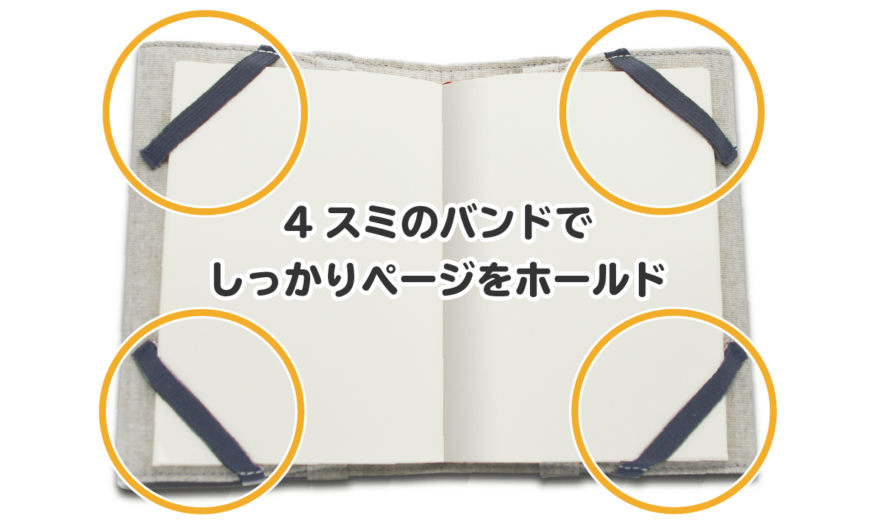 【3】ページが閉じないように4スミのバンドがしっかりホールド