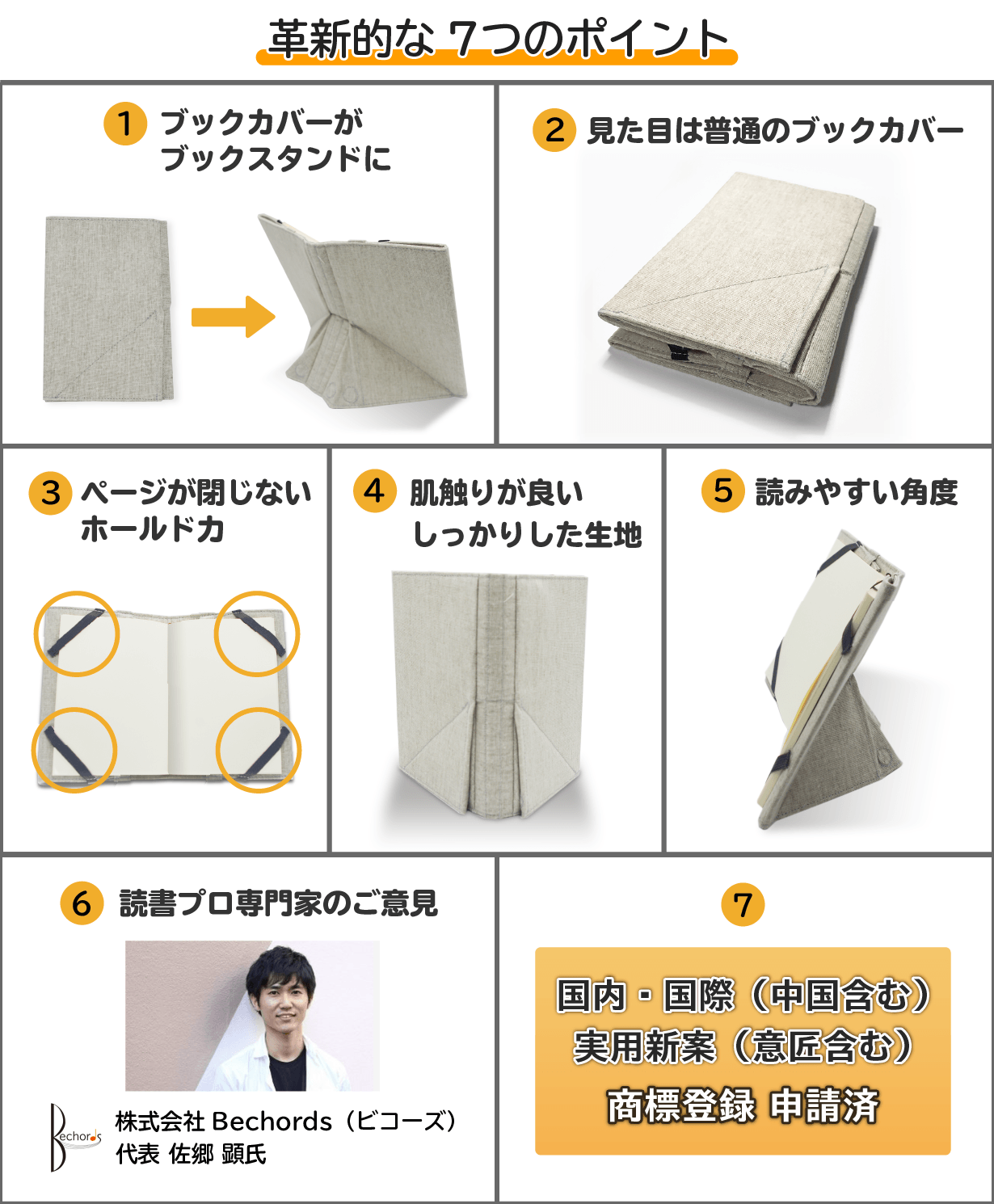 【7】国内・国際(中国含む)実用新案(意匠含む)、商標登録(国内) 申請済ブックカバーがブックスタンドになるECBBオリジナルの発想!