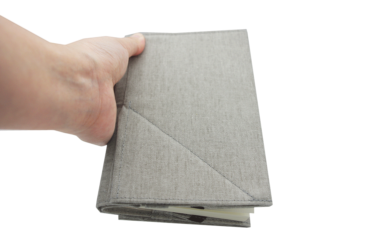 カバーに使用する生地は、肌触りにこだわりました。しっかりとした質感の生地を採用しスタンドを利用せず本を手に持って読む時もしっかりと手に馴染むものを選びました。