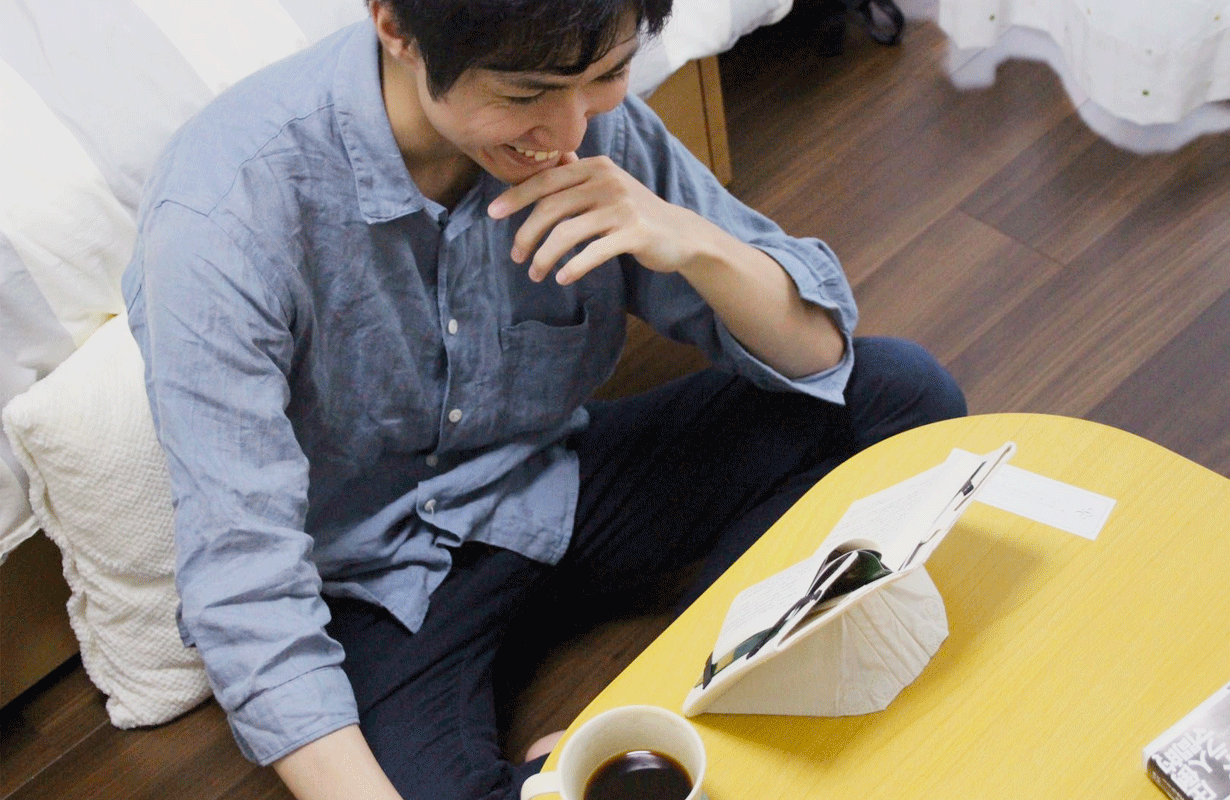読書をするのにハンズフリーにする方法はなにかないだろうか...。そこで開発者が思いついたのがこの「ECBBブックカバースタンド」です。