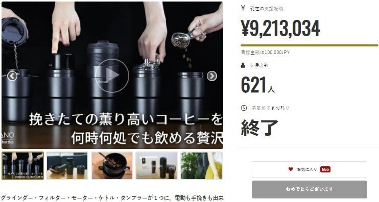 SóloCanoを海外のクラウドファンディングサイトで見つけた時に一目ぼれして何とか日本で販売したいと思い、何度も何度もメーカーとやりとりをして日本独占販売権を獲得することができました。この商品はボタン一つでいつでもどこでも挽きたてコーヒーが飲めてとても便利ですし、使い捨てフィルターがいらないのでエコで地球にやさしいし、長く使うとお財布にもやさしい商品です!海外・国内ですでに2,500人以上の方に支援を頂いております話題の商品です。すべてのコーヒー好きな方におススメ致します。