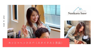Sankara base スタイリスト芳長指名 カット+ヘッドスパ(男性専用)カジュアルからビジネススタイルフェードスタイルなどオールマイティに得意なスタイリスト芳長指名限定リターンです。通常ヘッドスパ+カット+指名料¥7,500→¥6,500になるお得なクーポンです。