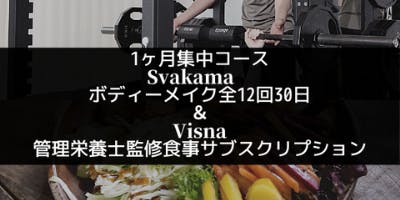 Visna&Svakama ボディーメイクコース全12回/30日&管理栄養士監修食事サブスクリプション付きコース。ジムでワークアウト後、管理栄養士監修のダイエットや筋力アップに最適な食事が食べられるコースになります。