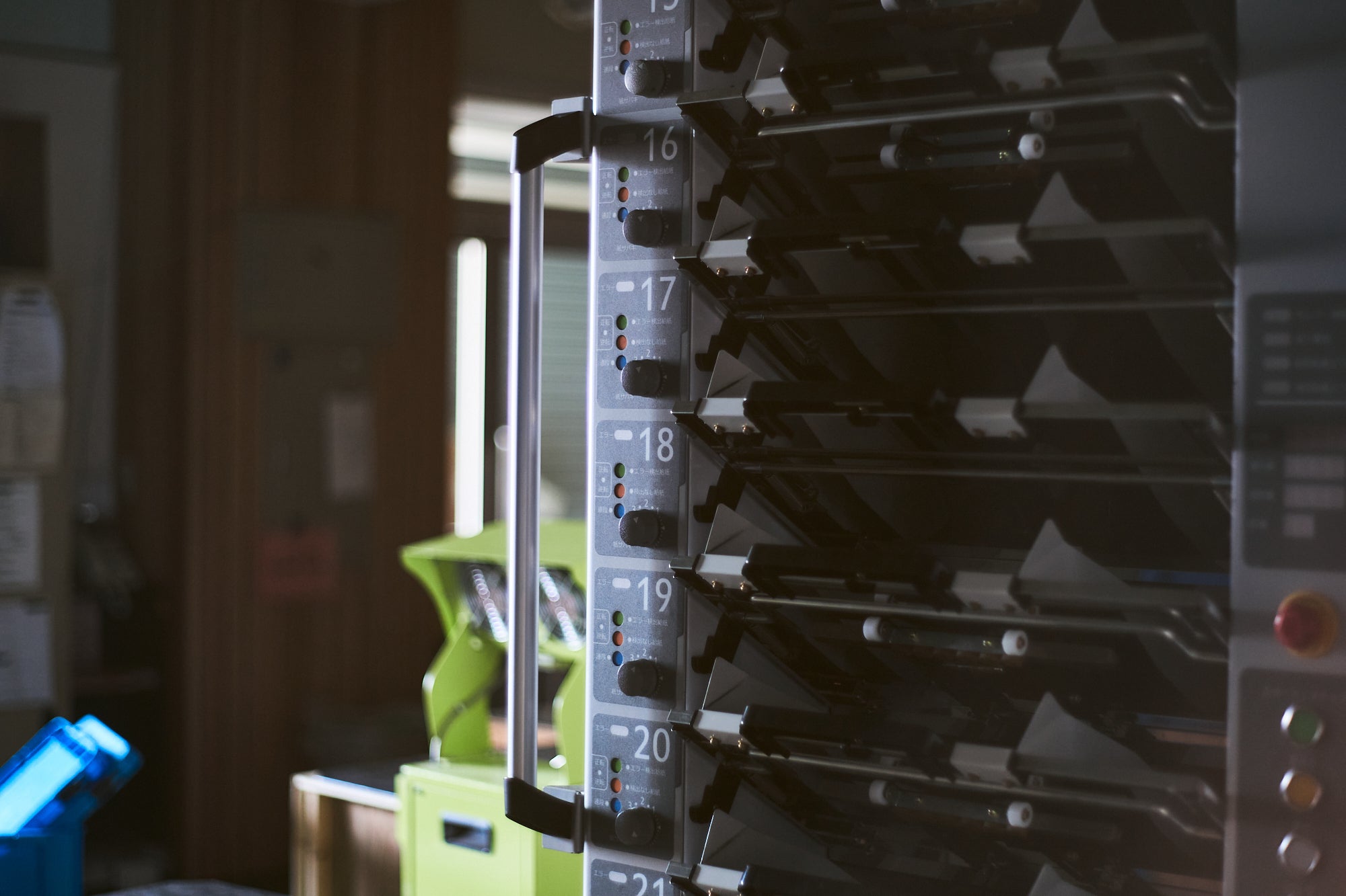 最大24種のチラシを丁合機にセットし、1分間に約50〜60束を作成します。チラシは1枚1枚仕様が異なり、独自の個性を持ち合わせているため、それらをチラシ束にするには、職人的な技術が必要です。