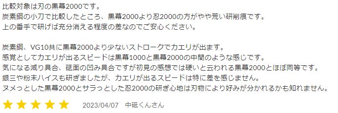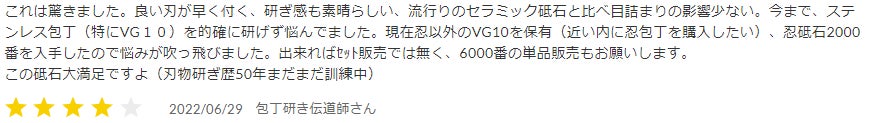 既に自社サイトでも砥石に関する様々なご意見をいただき、大変励みになっており、また他の砥石との使用感の比較などは、我々も学ばせていただくことが多く、助けられております。