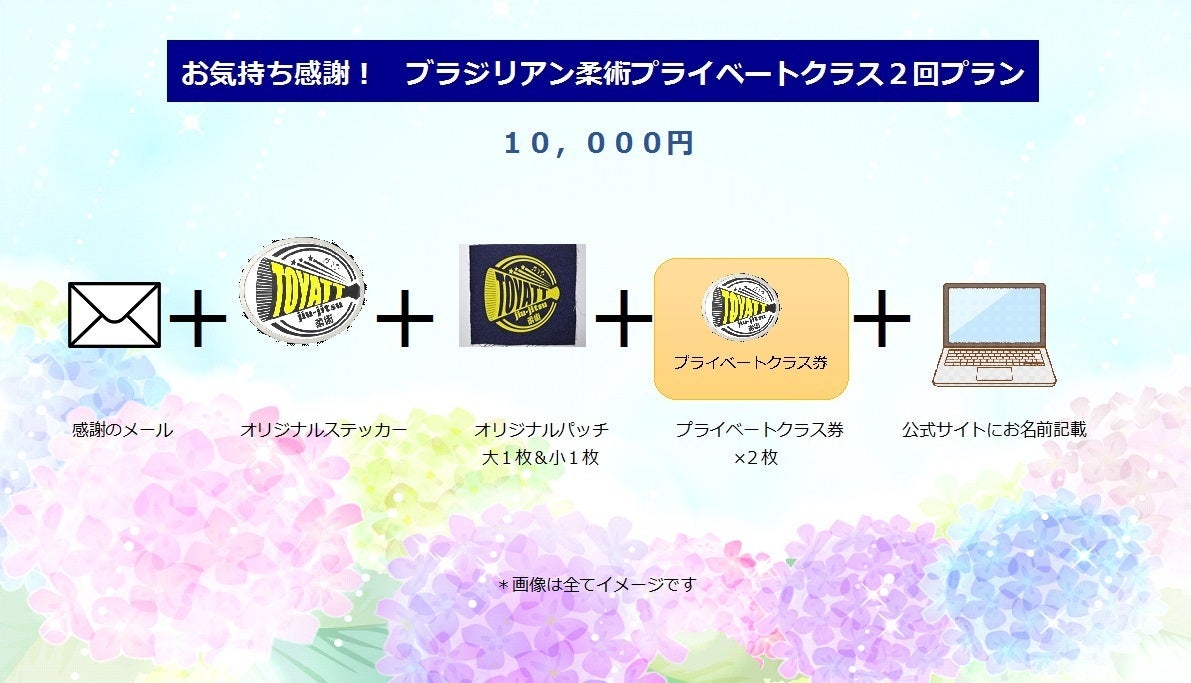 皆さま、ご支援いただきありがとうございます。 おかげさまをもちまして、たくさんのご支援を頂戴し、終了まで2週間となりました現在、目標の金額の67%という高い達成率となりました。改めて御礼申し上げます。 7月30日のクラウドファンディング終了まで、どなたが、また、どのリターンをご支援いただいたのかを、わたくし達は知ることができません。 本来でしたら、すぐにでも、おひとりおひとりに御礼を申し上げたいところではございますが、終了までご連絡できない旨お許しくださいます様、よろしくお願い申し上げます。 道場の方は既に練習を開始しております。皆さまにはお気軽にお寄りいただきます様、お願いを申し上げます。 取り急ぎ御礼とご報告まで。 ありがとうございます。 TOYATT柔術 徳田博信