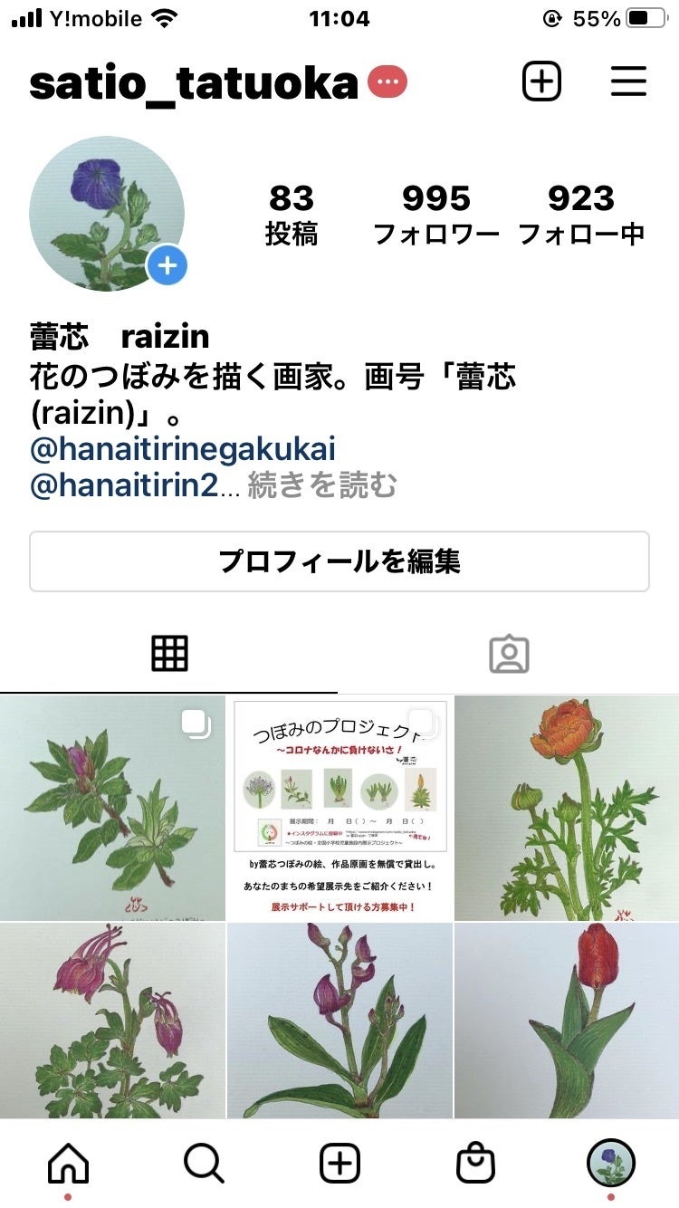 2020年5月 会代表立岡佐智央 コロナ禍の中、つぼみの絵を描き始め順次インスタグラム内に画号「蕾芯」raizinで投稿開始。現在に至る。