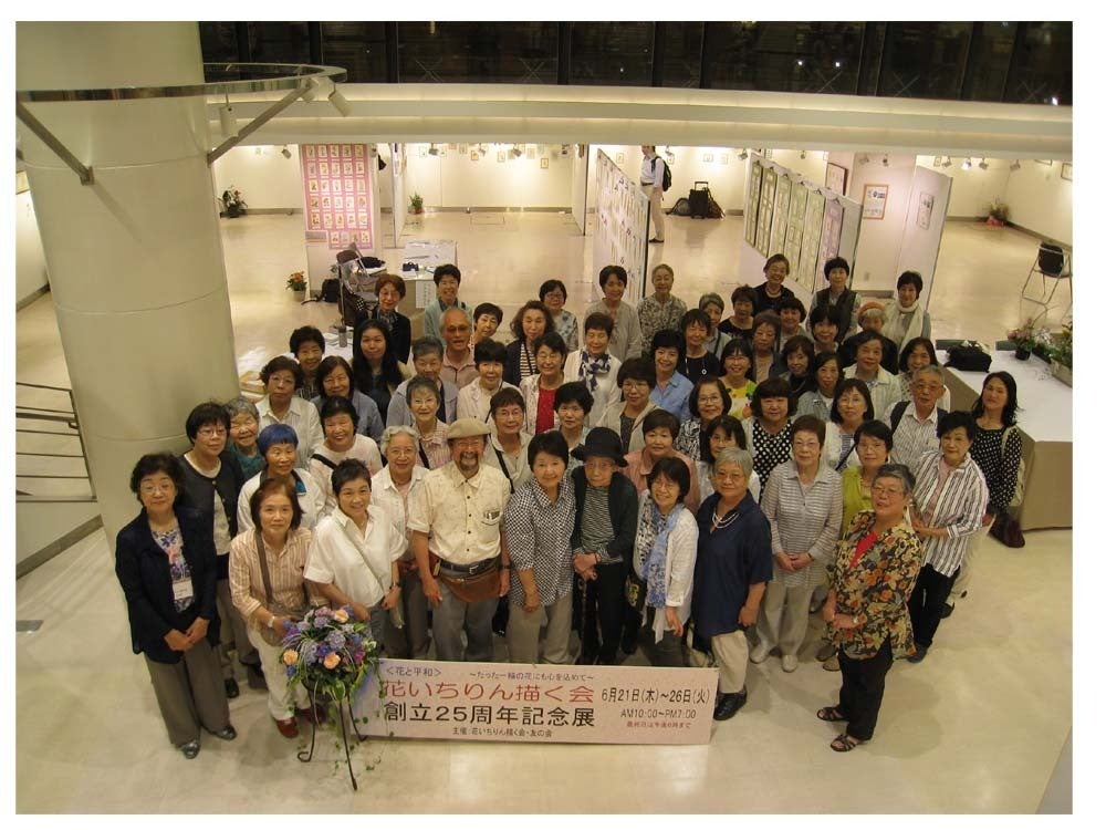 2018年 6月 三宮・さんちかホールにて、花いちりん描く会25周年記念展開催。ドイツベルリン日本人学校、カラチ日本人学校様に草花絵画寄贈。
