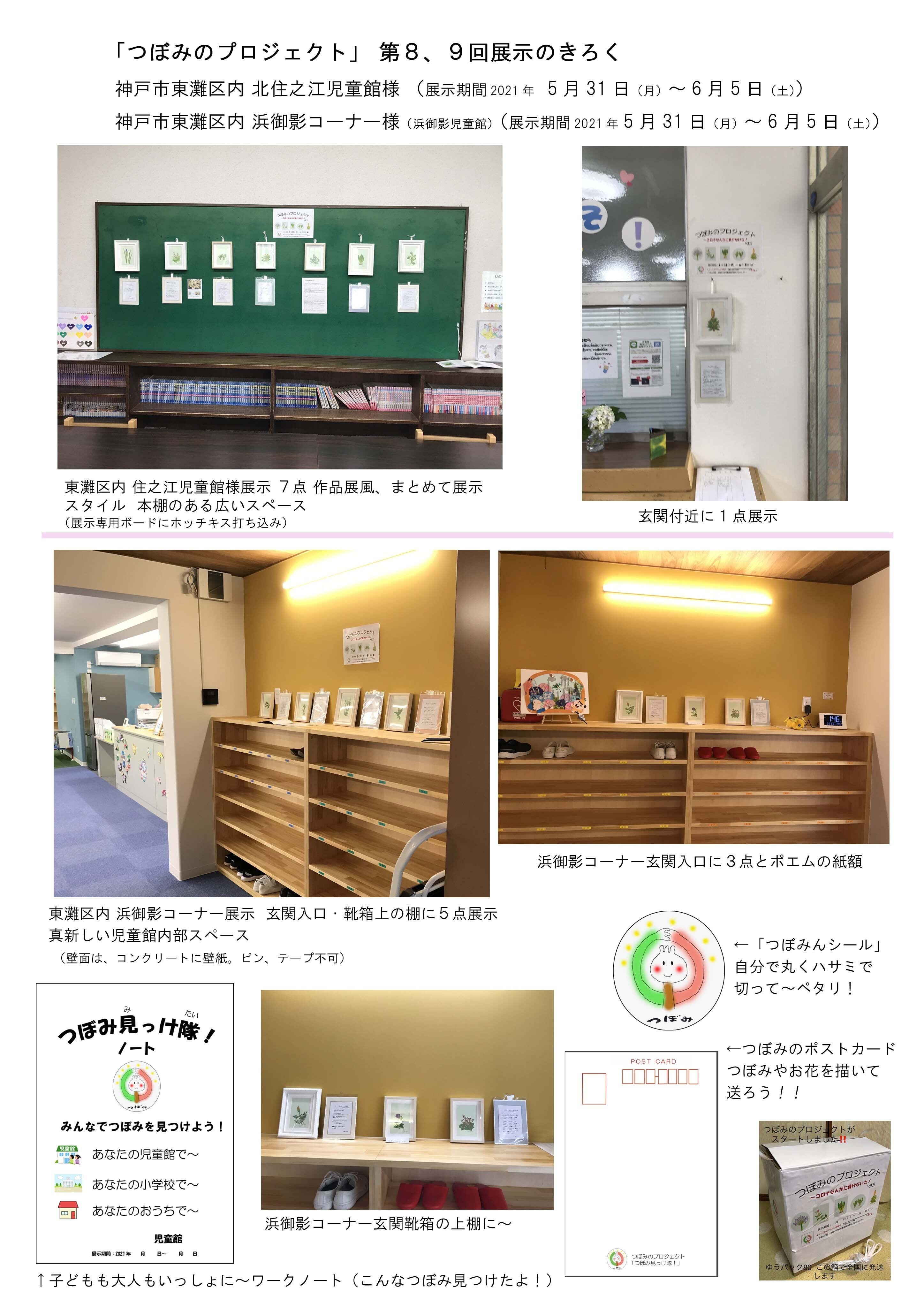 神戸市東灘区内 住之江児童館様に展示してきました。大きなディスプレー用の掲示版に7点展示。あと一点は玄関入口に~ 午後、児童館にやって来た子どもたちはびっくりするかな!?